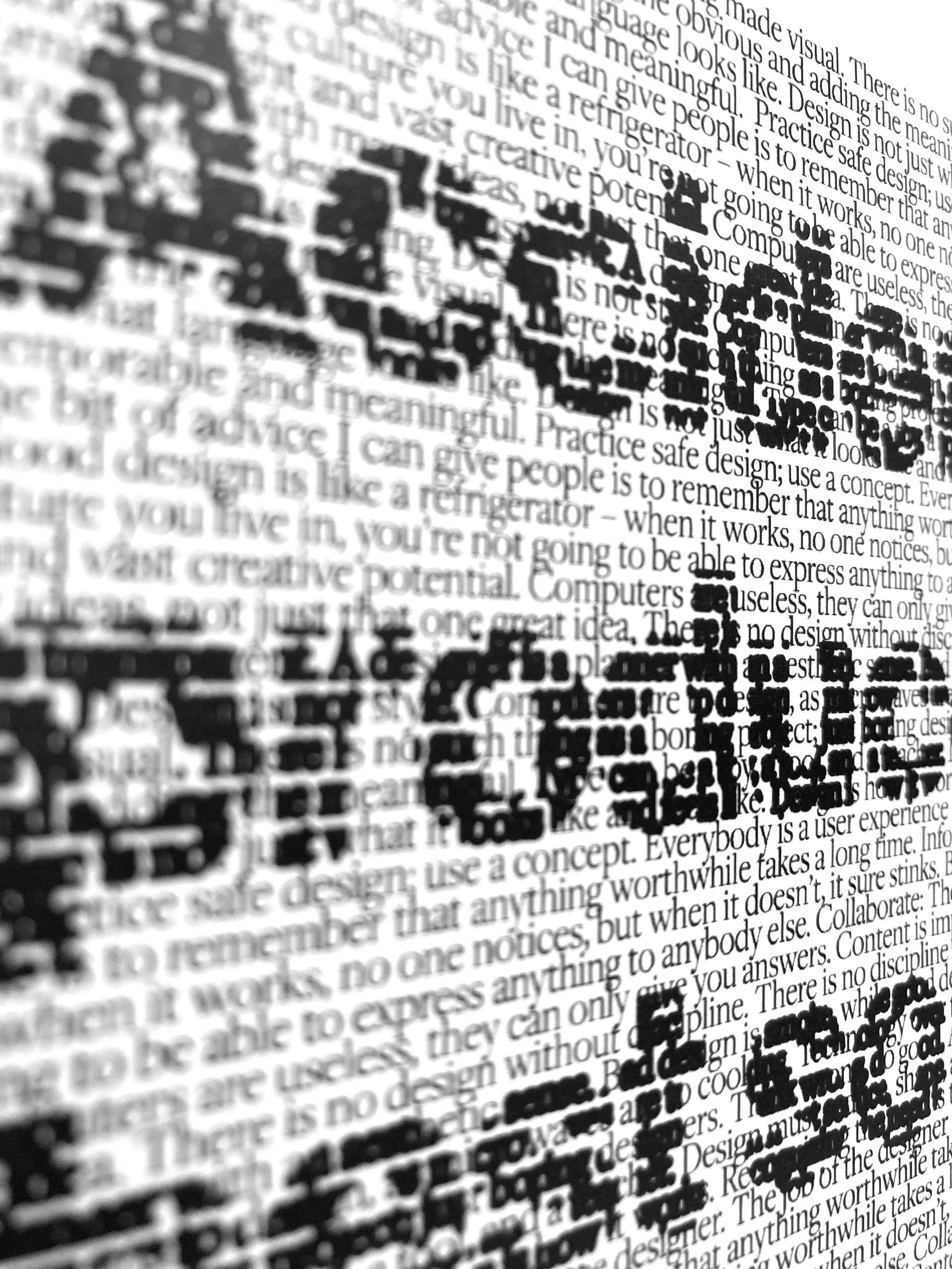 In this first poster, the background body text is made up of all the quotes that we had to choose from. Click on the image and take a closer look!